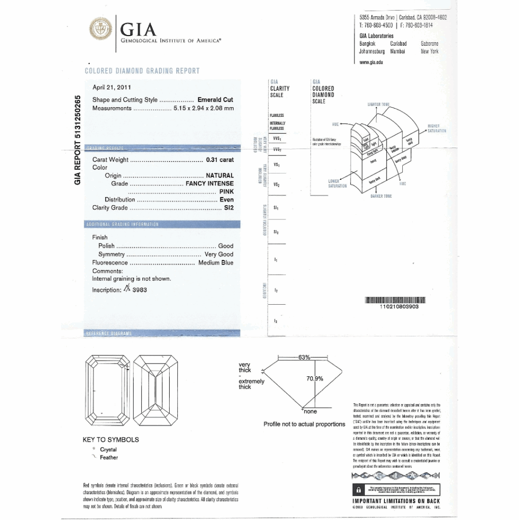 0.31ct Emerald shape Argyle 5P Fancy Intense Pink Color Diamond, P339