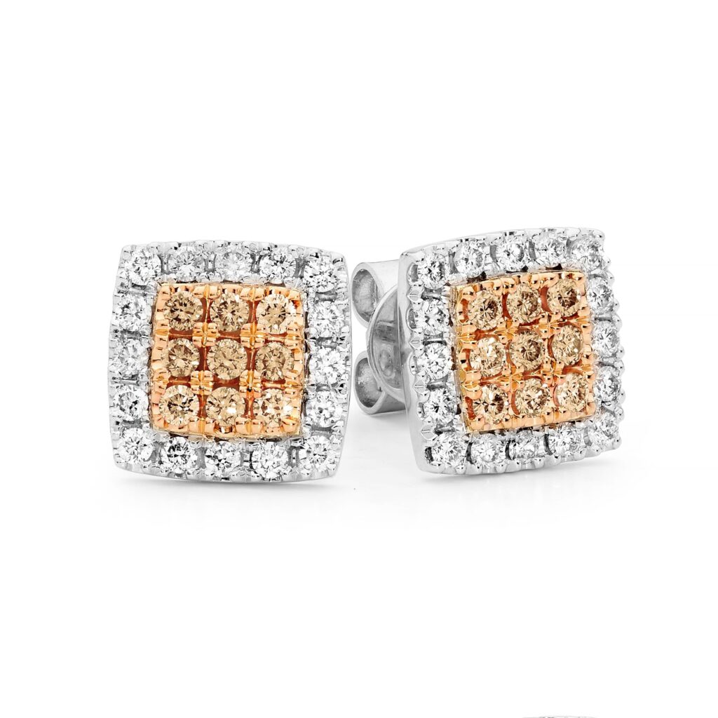 Square Argyle Champagne and White Diamond Stud Earring – EDJE028/016