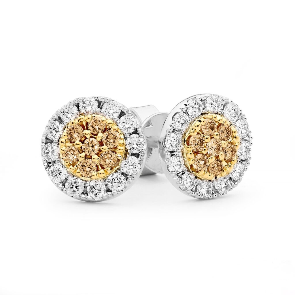 Round Argyle Champagne and White Diamond Stud Earring – EDJE029