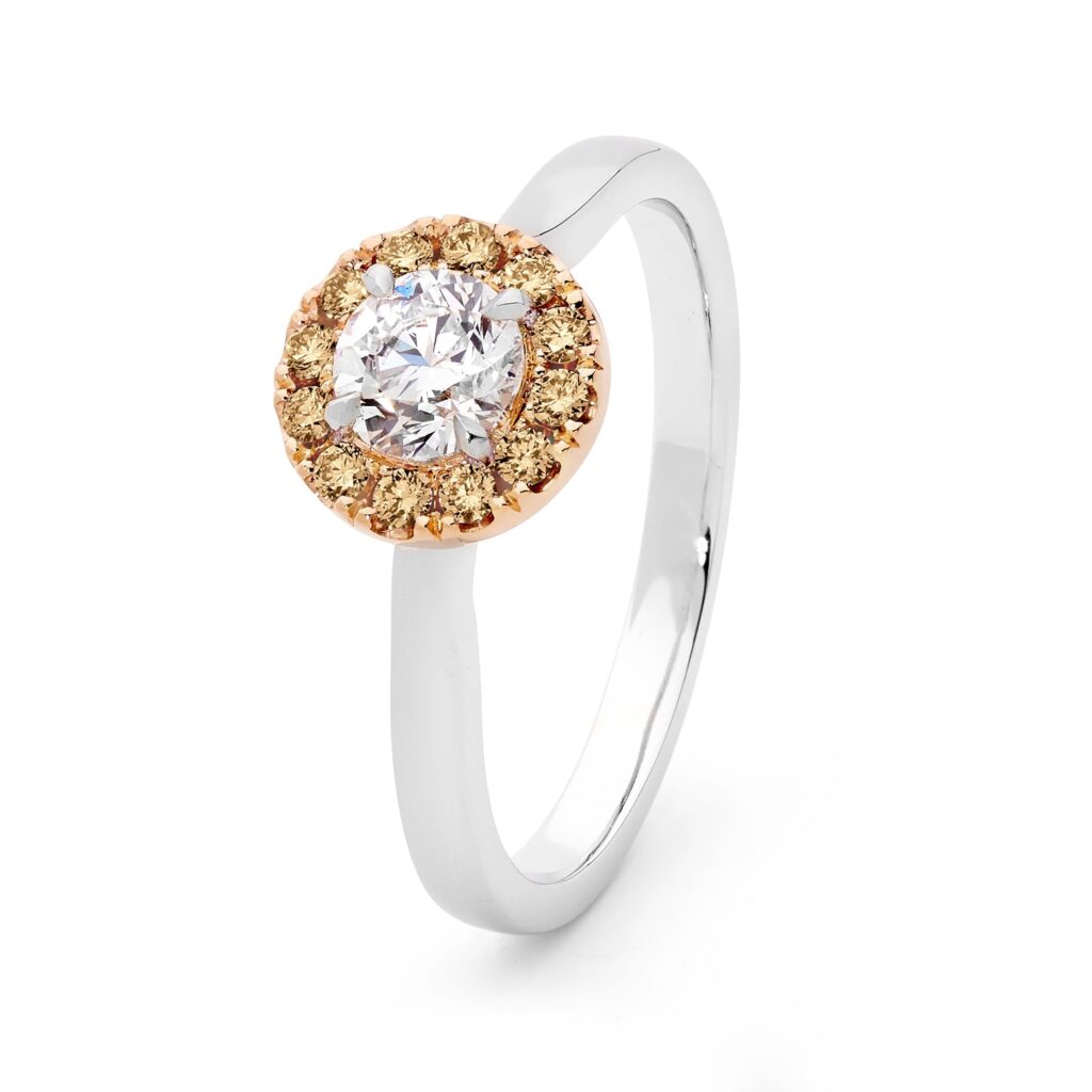 White and Champagne Diamond Halo Ring – EDJR019/013