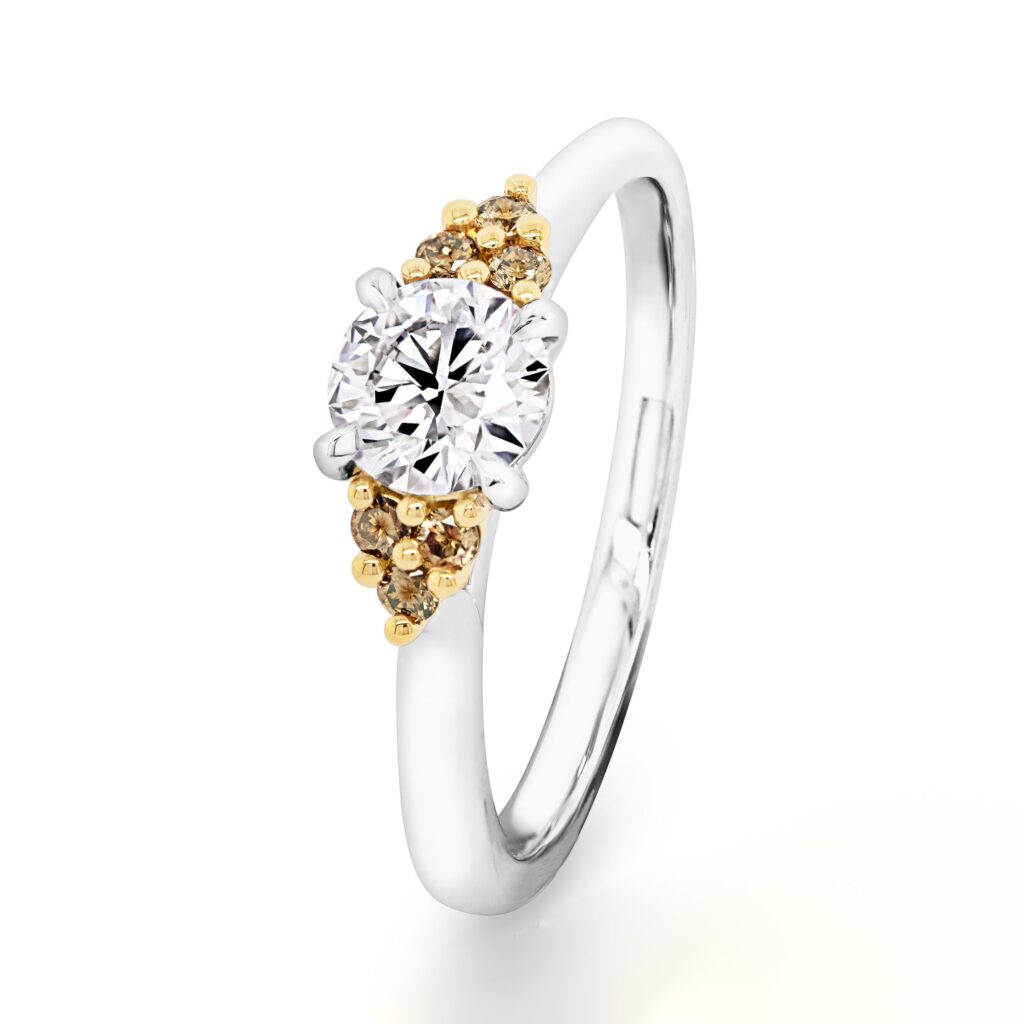 White and Champagne Diamond Three-Stone Ring – EDJR057