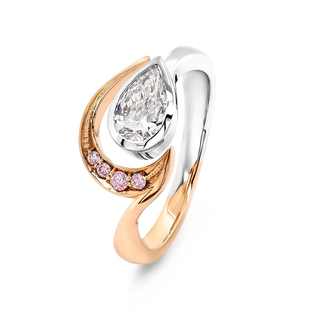 Pear-Shaped White Diamond and Argyle Pink Diamond Halo Ring – EDJR071/001