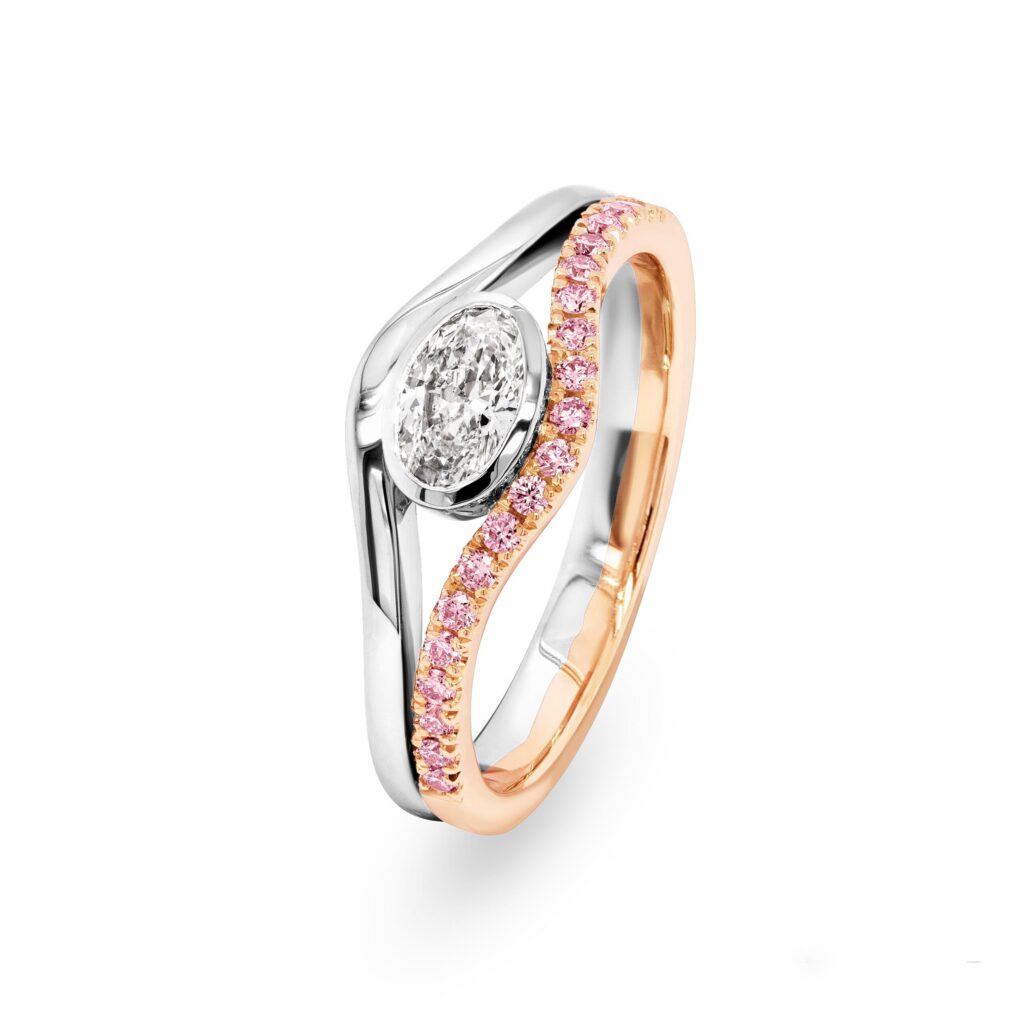 Oval White Diamond and Argyle Pink Diamond Two-Tone Ring – EDJR075/001