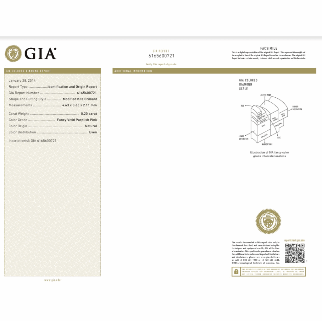 0.2ct, Fancy Vivid Purplish Pink, Kite Shape Price upon request P362 A splendid Pink Diamond with a wonderful sparkle and Fancy Vivid Purplish Pink color face up. This magnificent Pink Diamond that’s full of fire. For more information about this item please contact our customer service department. Pink diamonds are one of the most fascinating gemstones […]