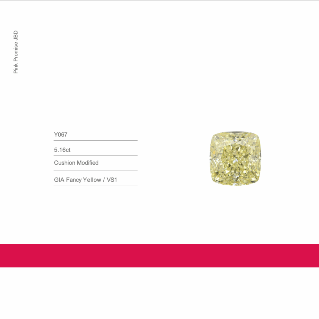 5.16ct Cushion shape Fancy Yellow Color Diamond, Y067