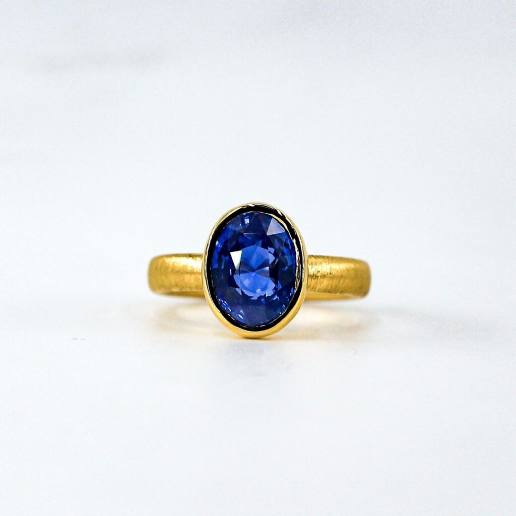 18K Yellow Gold Band Oval royal Blue Sapphire Solitaire Ring – SPR06